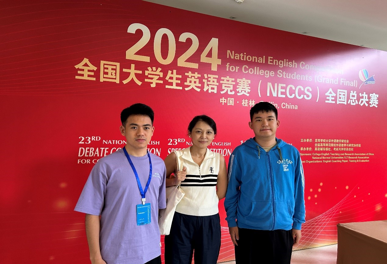 供图、供稿:张晨花 编辑:陈文婧 2024年全国大学生英语竞赛(NECCS)全国总决赛喜传捷报,由外国语学院张晨花老师带队并辅导的学生陈威宇(徐特立学院),李明成(精工书院)两名同学分别获得全国总决赛的一等奖和三等奖,这是我校学生在该赛事中首次参加总决赛并获佳绩。 2024年全国大学生英语竞赛由高等学校大学外语教学研究会和全国高等师范院校外语教学与研究协作组联合主办,全国 31 个省(自治区、直辖市)的 110 万名大学生参加了本次竞赛。该赛事分别于4月21日进行各校初赛,5月19日...