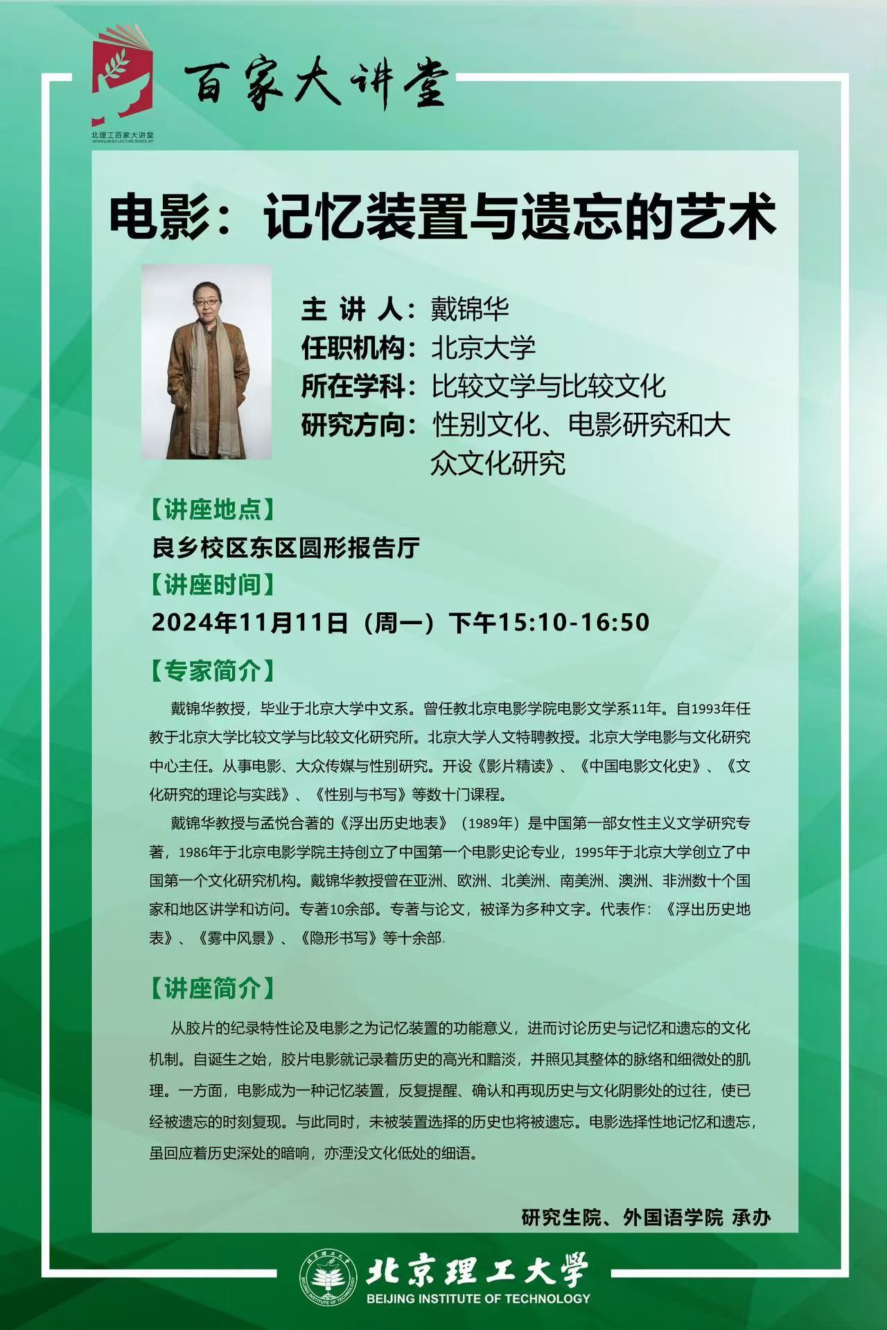 百家大讲堂讲座预告——电影:记忆装置与遗忘的艺术